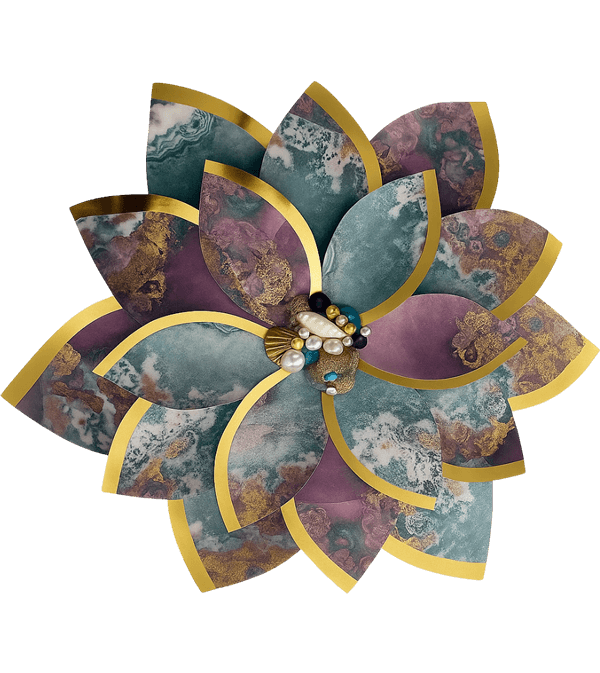 Bring the serenity of the shoreline into your home with Beach Dreams, a handcrafted paper flower inspired by the ocean. Each petal features soft ocean colors with gold accents and a seashell-inspired center.