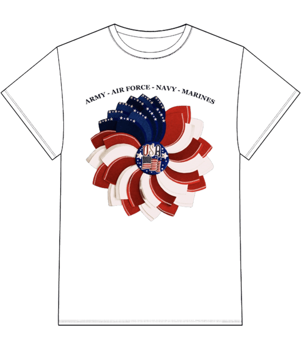 Show your pride in style with this exclusive Patriotic Flower Tee, featuring the iconic Star-Spangled Paper Flower digitally printed on premium cotton. Representing the Army, Air Force, Navy, and Marines, this design merges strength and creativity in one bold statement.